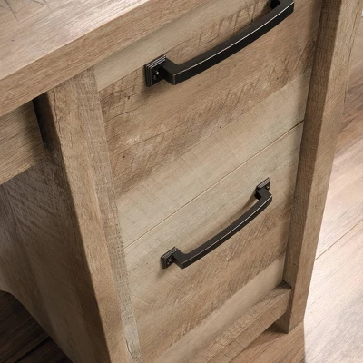 Updating the style of your home office space has never been easier. Add a touch of rustic-inspired design and beauty to your home with this computer desk with drawers from the Cannery Bridge® collection. This home office desk offers a spacious top surface that provides you with the room you need for various items like your laptop, an accent lamp, stacks of notepads and your hot cup of coffee. The pencil drawer and small storage drawer both open and close on smooth metal runners for easy access storage of items like folders, envelopes, and other miscellaneous supplies. The lower drawer with full extension slides can hold letter-size hanging files for increased organization options. This single pedestal desk’s versatile design and charming good looks make this writing desk a great addition to any room in your home. Finished in Lintel Oak® and detailed with attractive hardware, this computer desk with storage will have you motivated and ready to tackle all your projects!
