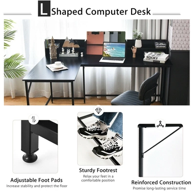 - L-shaped Corner Design: The L shaped corner computer desk fits nicely in a corner to make full use of every space. It can be placed in your dormitory, small apartment and other limited space. Meanwhile, the cross bars take the stability to next level and enable you to rest your feet at a comfortable level.