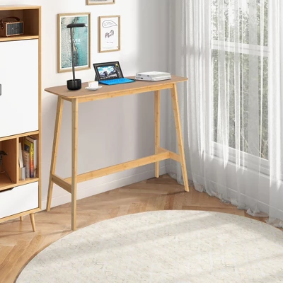 With 48” spacious tabletop, the 39” tall bar table raises the cups and glasses to a comfortable height and gets you in relaxed position for casual entertaining. You can have a good time drinking, eating or doing other leisure activities with your family or friends. On the other hand, you can also use it as a console table in the entryway or a standing work table in the living room. What’s more, the sturdy bamboo construction enables the tabletop to hold a lot and keep stable. Plus, the crossbeams will undoubtedly enhance the overall structure for high stability. And there are also non-slip foot pads to avoid leaving scratches while move the high-top dining table.