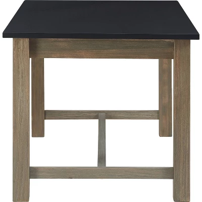 - Black tabletop and distressed gray wood base for a striking look