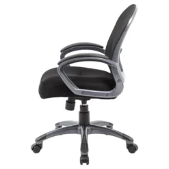 This stylishly designed office chair features LeatherSoft upholstery with white stitch surrounding to comfortably get you through your work day. This chair features an ergonomically contoured back and seat and arms that are comfortably padded. High back office chairs have backs extending to the upper back for greater support. The high back design relieves tension in the lower back, preventing long term strain. The waterfall front seat edge removes pressure from the lower legs and improves circulation. Chair easily swivels 360 degrees to get the maximum use of your workspace without strain. The pneumatic adjustment lever will allow you to easily adjust the seat to your desired height.