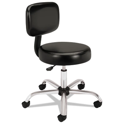 - Seat and back are covered in black healthcare vinyl. Features armless design with circular seat shape. Easy-to-clean base. Lifetime manufacturer limited warranty. Medical stool can be useful while conducting procedures and experiments. 5-star polished aluminum base has 5 2″ dual-wheel casters for easy mobility. Lifetime mfr. warranty.