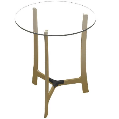 Whether you adore venturing into the vintage-inspired world of modern retro antiquity, or relishing in the luxurious realm of Hollywood Regency style, The Reese Glass Side Table will provide you with a well-rounded living room, bedroom, and home office design. It features a sleek tripod base in a cast aluminum metallic gold finish for a dazzling spectacle your interior will appreciate. Its thick glass top is perfectly round for a soft edged and resilient design capable of lifetimes of use. This is a modern side table with a heart of gold and even grander luster for your everyday practical and daily style needs.