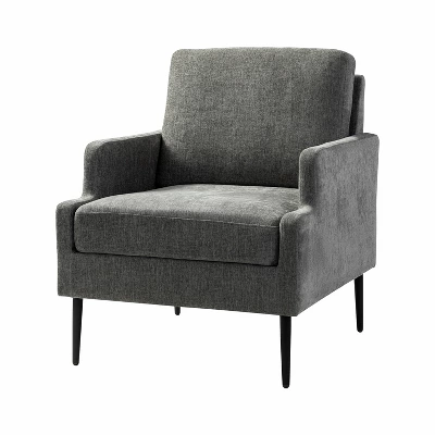 This accent chair boasts a mid-century modern design with thin, notched armrests that offer sturdy support and balance. The plush chenille fabric upholstery is both soft to the touch and durable. Featuring a sleek silhouette, the accent chair’s tapered metal legs provide support and a simple, modern look. With its slightly larger seat dimensions, this chair offers more freedom and flexibility of movement, allowing you to find the perfect position that suits your comfort preferences. Equipped with a comfy seat and backrest, it’s perfect for long periods of sitting. Easy to assemble, the exquisite contemporary accent chair is a perfect addition to the living room, bedroom, or office, offering a unique design to round out various home decor.Item Size?29″Wx32.5″Dx35″H?Seat Size?24″Wx21″Dx19.5″H