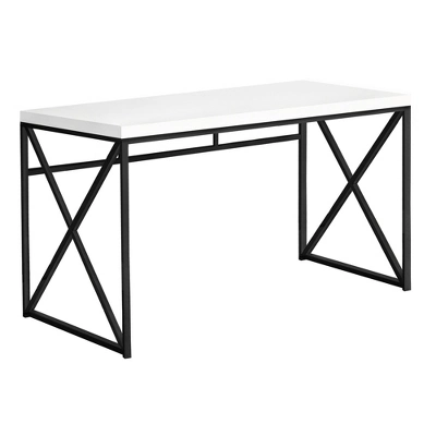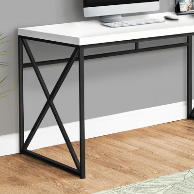 - This office desk features a contemporary X-design metal base that ensures sturdiness