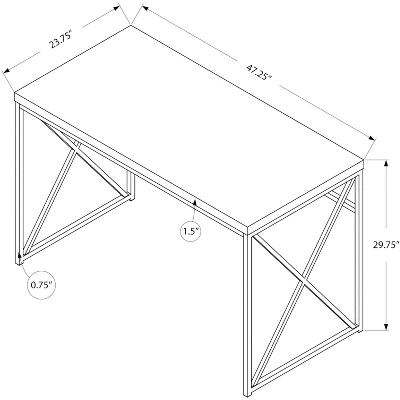 Featuring a modern, wide open design, this desk look is equally functional as a computer desk or writing table. Sized for small homes, apartments or condos, space saving is a breeze thanks to this piece that is supported by a sturdy metal X-design base to ensure stability. With lots of space to push the chair in, the thick panel top is perfect for a laptop/tablet, a lamp, a notebook and some important supplies to get the job done. UPC Codes: 680796045326, 680796045319, 680796045432, 680796045449