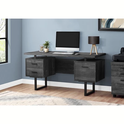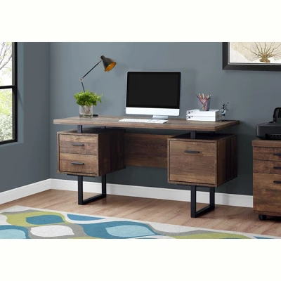 When your workstation needs to be both compact and functional, this office desk serves that purpose with ease and its stylish finish is easy on the eyes! This computer desk is there for you with all you need to get the job done no matter the task at hand. A sturdy metal frame, 3 convenient storage drawers (1 for standard/legal documents) on easy metal glides – A recipe for success! The 60-inch length fits perfectly in small homes, apartments or condo but provides ample surface space for a computer, lamp, notebooks and more supplies. UPC Codes: 680796013028, 680796013042, 680796045296, 680796045302, 680796045425