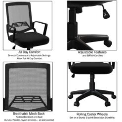 Office Chair – Adjustable Height Computer Chair With Wheels, Square Tilting Mesh Back, Foam Seat, Arms, Swivels In 360-Degrees By Lavish Home (Black)