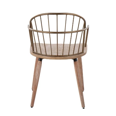 Bring farmhouse style to your dining room with the Riley Dining Chair by LumiSource. Our updated take on a traditional spindle-back chair the Riley is constructed of a stylish whitewashed wood seat and legs with an antique metal back and armrests. The perfect chair for a dining table or extra seating.