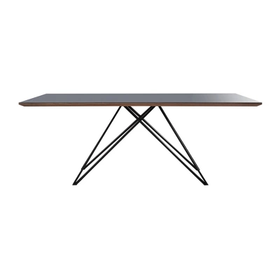 - Seldovia Modern Dining Table in Matte Black Metal Finish with Walnut Wood and Glass Top