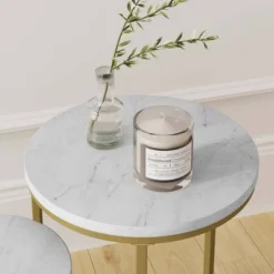 22″ Lula Nesting Round Table Set Matte White/Marble Gold – Nathan James