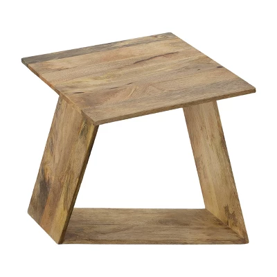 Intriguing design meets exquisite craftsmanship with this striking End Table. Featuring a wide square tabletop to flaunt your vases, showpieces, valuable collectibles and prized possessions, the angled frame design imparts an illusionary charm to it. Constructed sturdily from mango wood frame for lasting durability, the oak brown accented tone embellishes its overall look. Exhibiting aesthetically pleasing grain details for a riveting charm, it is supported on a stable base. A perfect addition to the living space or bedroom, this piece of furniture is sure to add an enthralling character to your place.