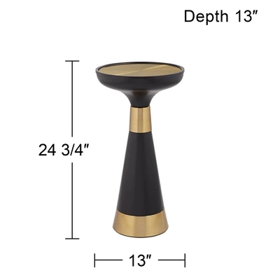 Sleek contrasting finishes highlight the Roxanne glam-luxe black and gold metal round side table. Made from metal, the table features a black finish offset by a gold finish. The round table top is perfect for storing personal belongings in your living room space.