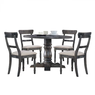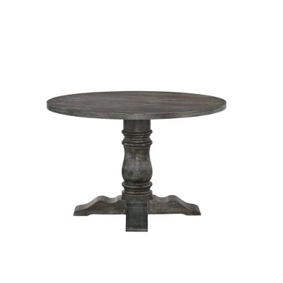Perfect for hosting small get-togethers or as a breakfast table. Whatever your needs may be this Leventis dining table form ACME Furniture is guaranteed to meet them. The weathered gray finish adds depth to the design. It features a beautifully crafted empire column pedestal base. *Matching side chairs available for separate purchase