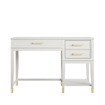 Work in style with the CosmoLiving by Cosmopolitan Westerleigh Lift Desk. Accented with trendy gold hardware and dipped feet, the Westerleigh includes two spacious drawers to store your ~things~. Here’s the game-changer: the top surface lifts up so you can work like a boss with options of sitting or standing. Available in multiple finishes, this glam desk nails the décor game.
