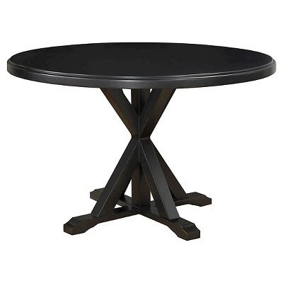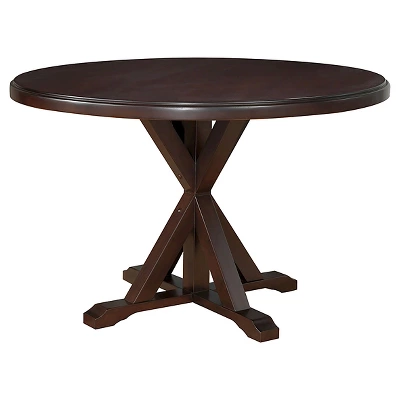 A round table encourages conversation and laughter. The generous size of our Winslet X Base Table means everyone can join in. Featuring a 48 inch round wood table top a-top an X base pedestal. The Pedestal-style base of the table allows you accommodate quite a few chairs at the table so everyone can have a seat. The cross beam designed pedestal makes a striking style statement in your dining room.